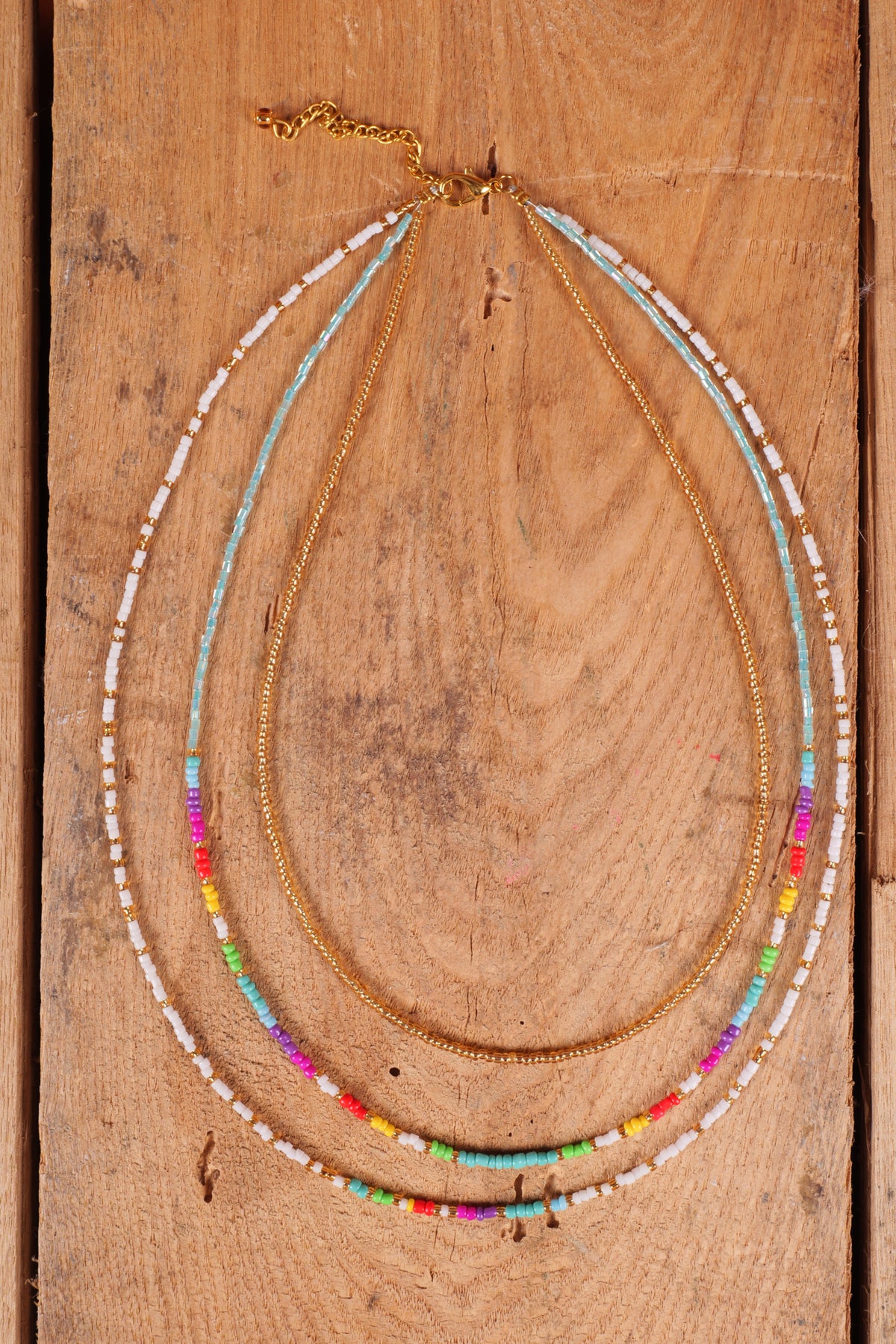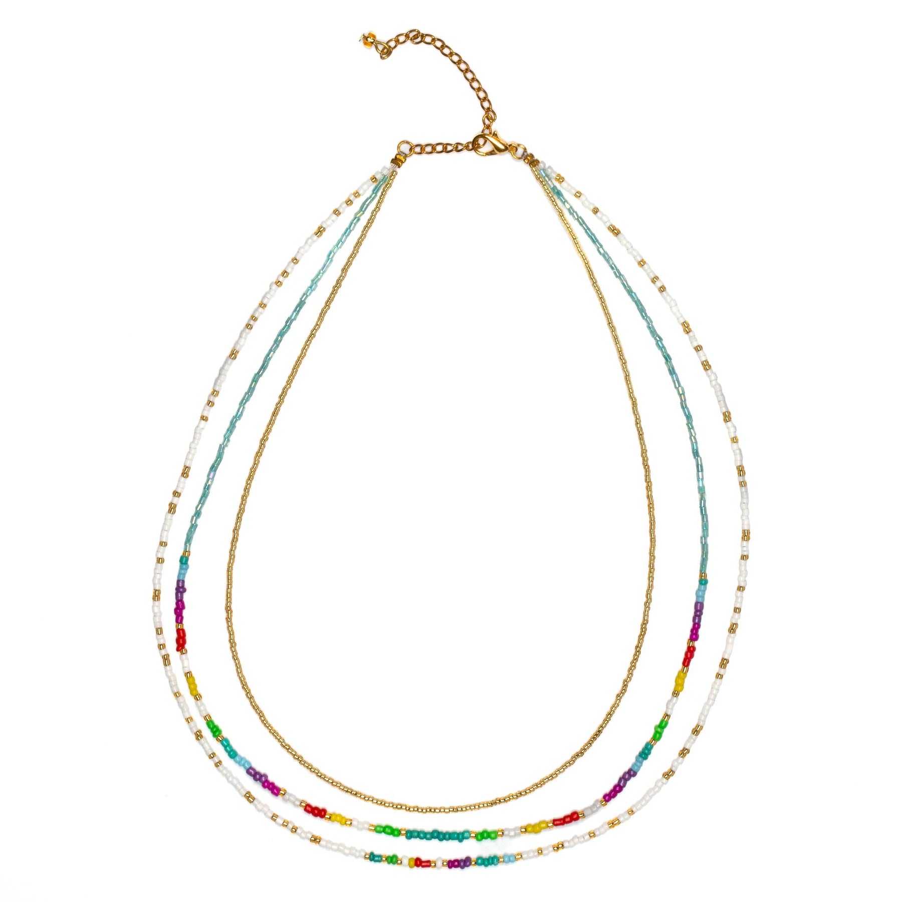 Elevate your style with our Triple Strand Multi Colour Necklace.