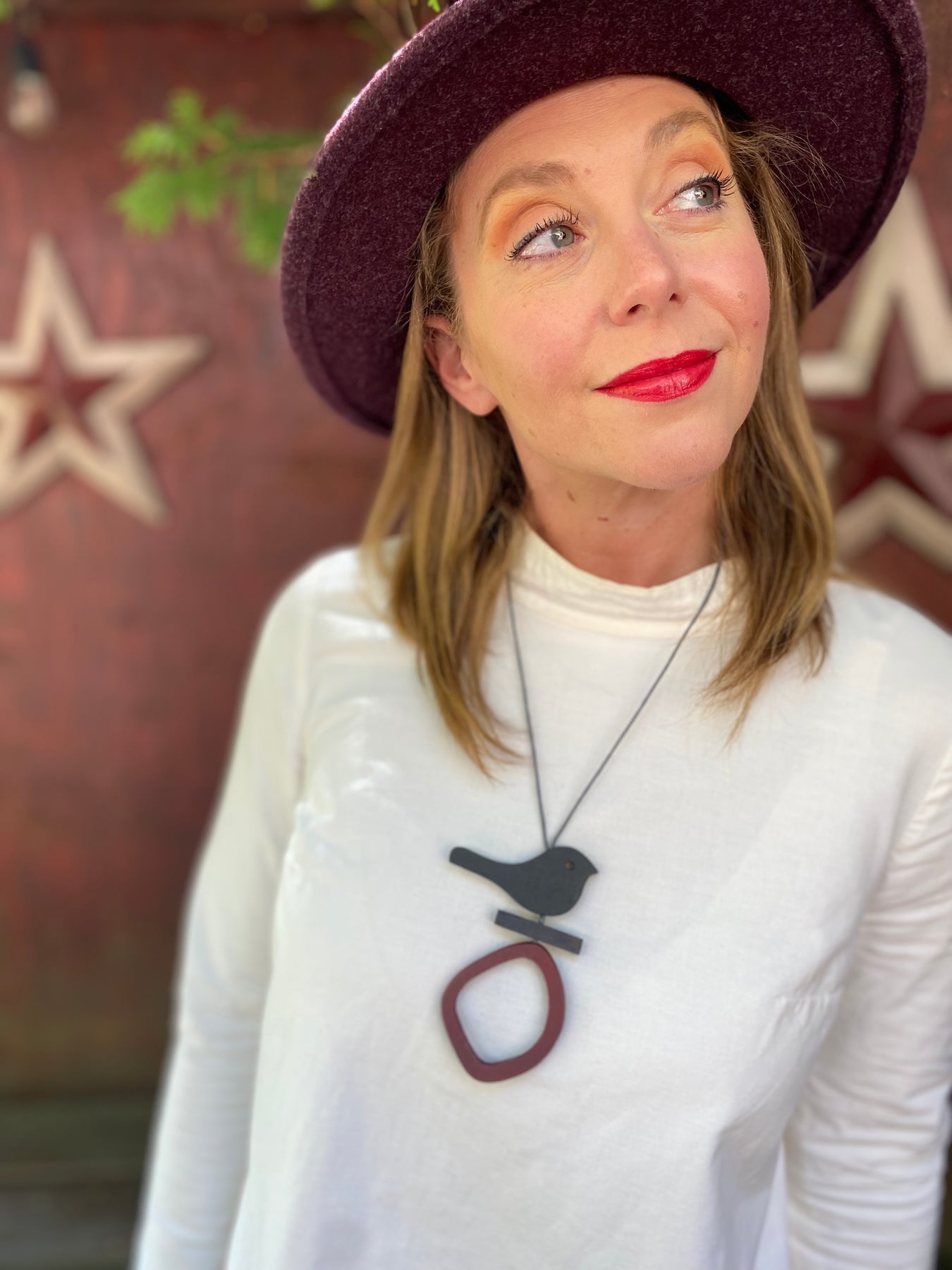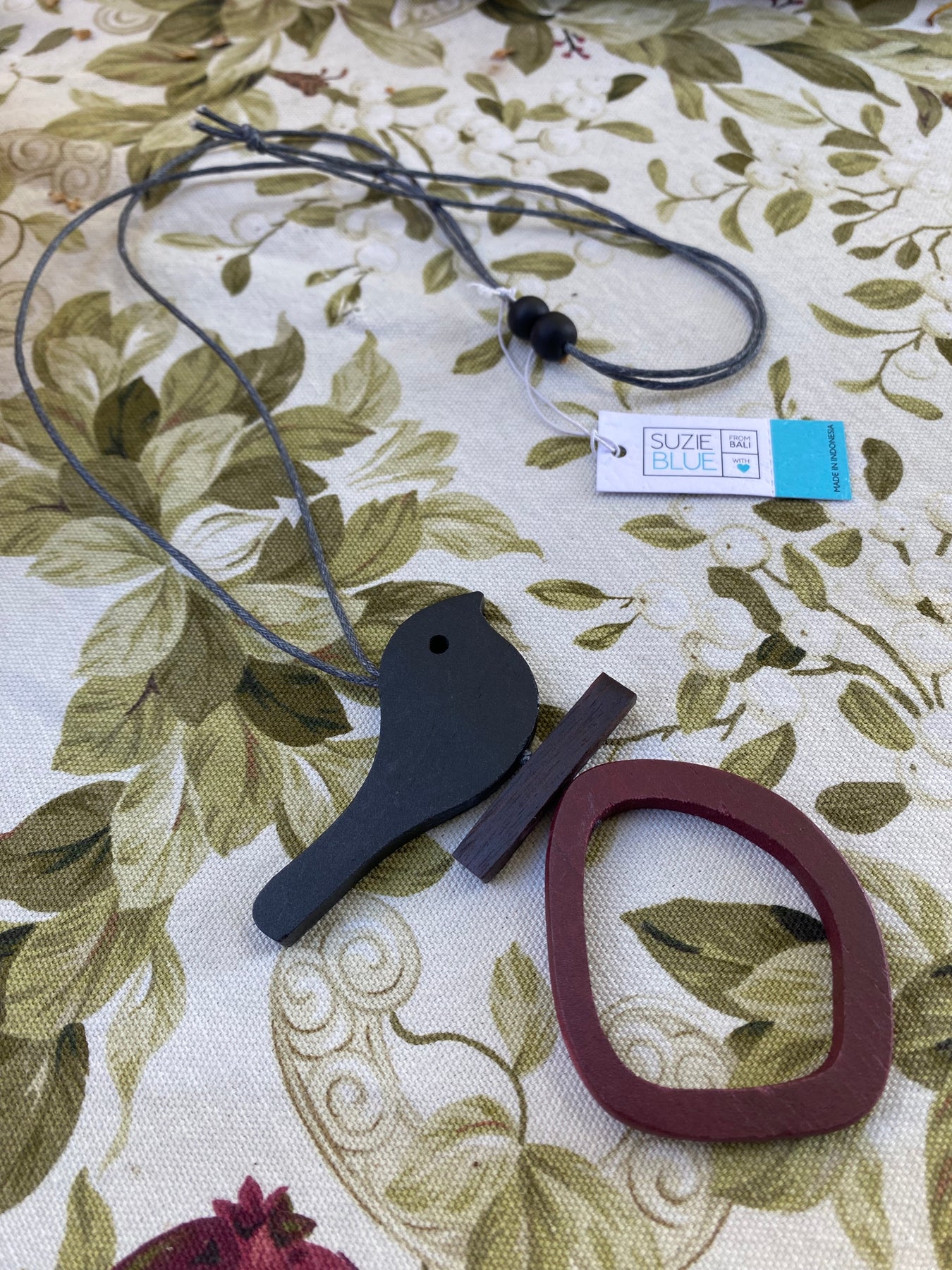 Handmade and ethically sourced from Bali. This artisan made necklace will make you smile. featuring a carved wooden bird on a hoop and adjustable suede cord allowing you to wear it long or short. Perfect for the nature lover. Artsy and fun!