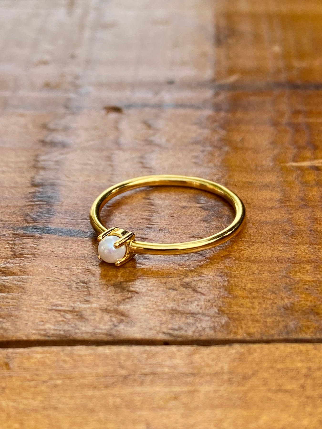 Dainty Pearl Ring in Gold Vermeil