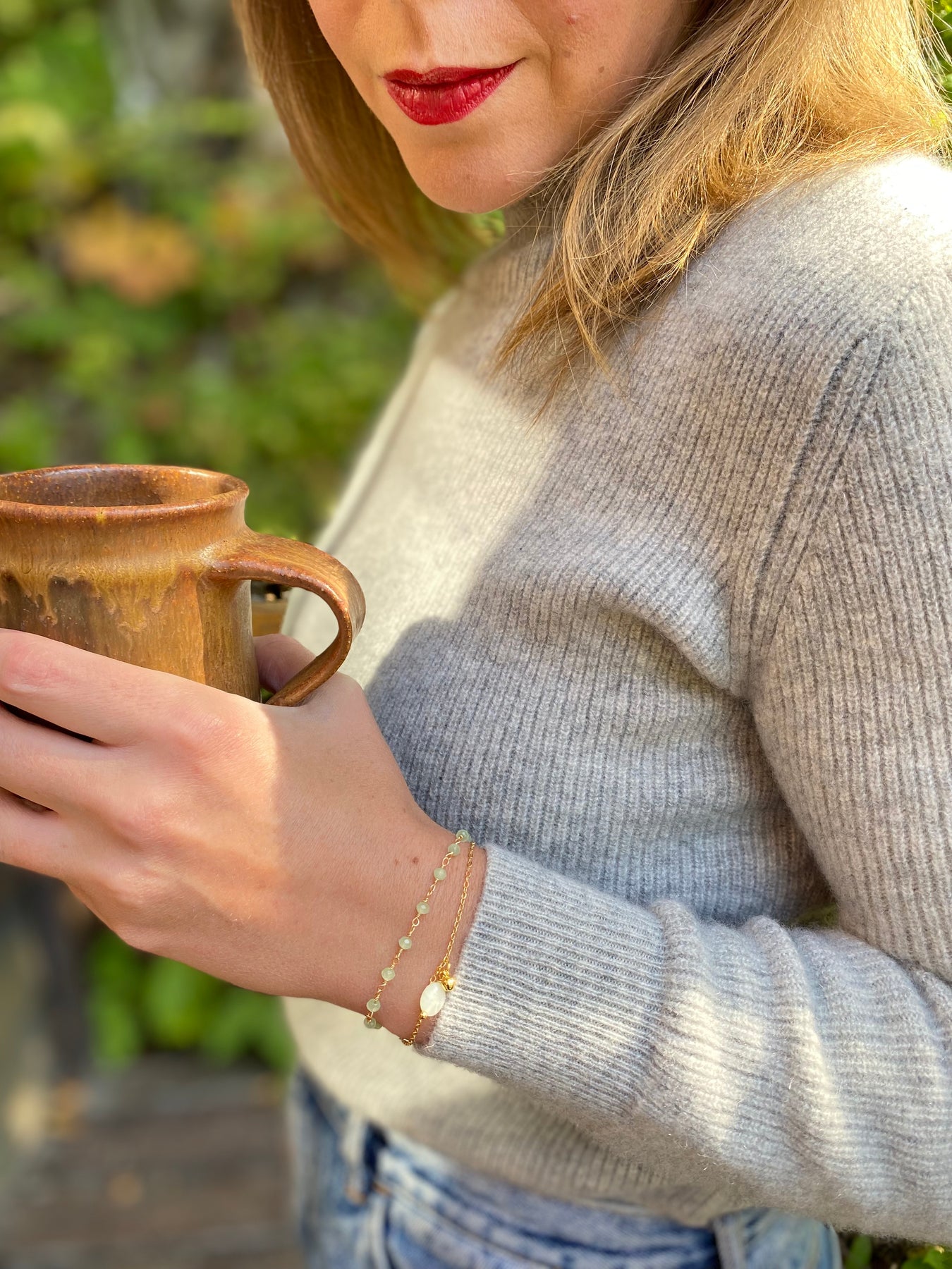 Amazonite & Glass Bead Bracelet In Gold Plate
